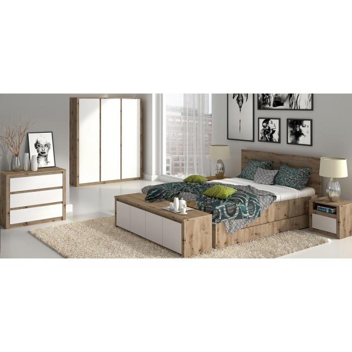 Łóżko Malta L1 dostępne w kolorze dąb artisan. Wykonane z płyty laminowanej, odpornej na uszkodzenia. W komplecie dostępny stelaż. Do łóżka należy dokupić materac o wymiarach 160x200 cm oraz szufladę na pościel. Produkt w paczkach do samodzielnego montażu.