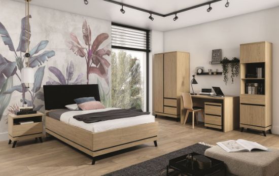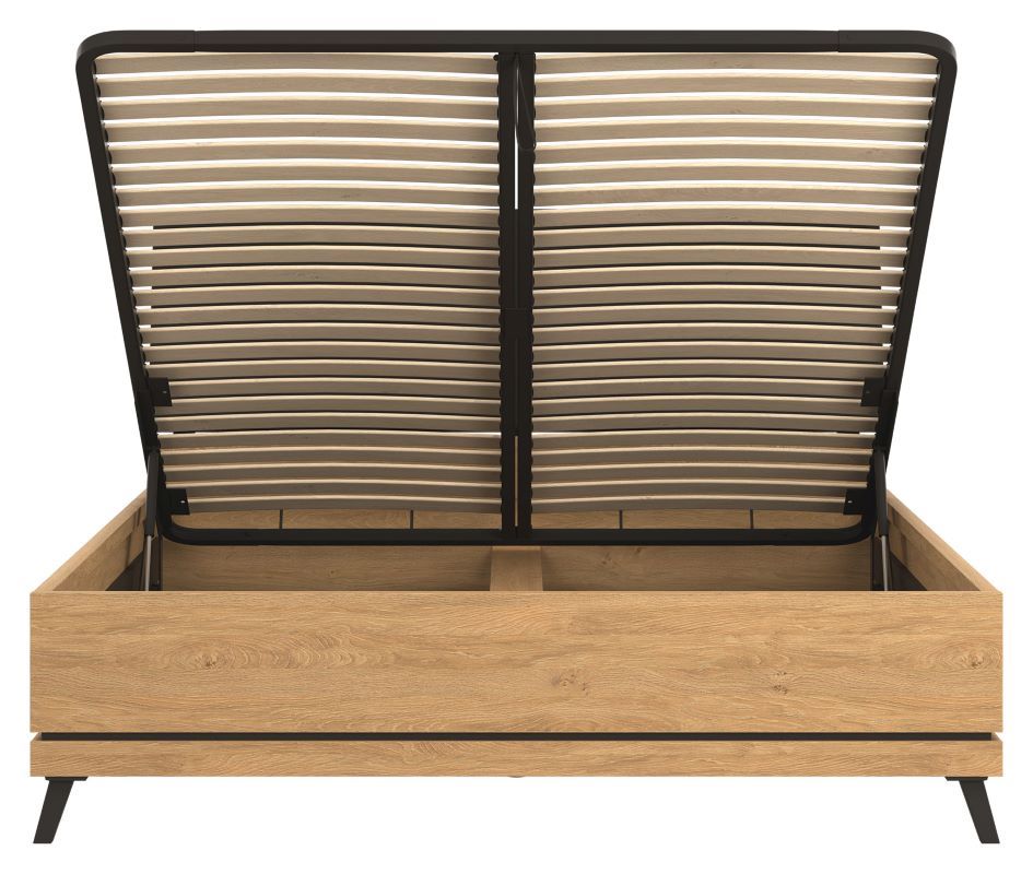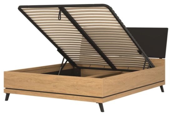 Atutem łóżka jest fakt, że posiada w zestawie pojemnik na pościel z wbudowanym stelażem na metalowej ramie z listwami drewnianymi pod materac. Materac nie należy do zestawu, istnieje możliwość zakupu osobno. Łoże dostępne jest w trzech wymiarach: 120 cm, 140 cm, 160 cm, 180 cm.