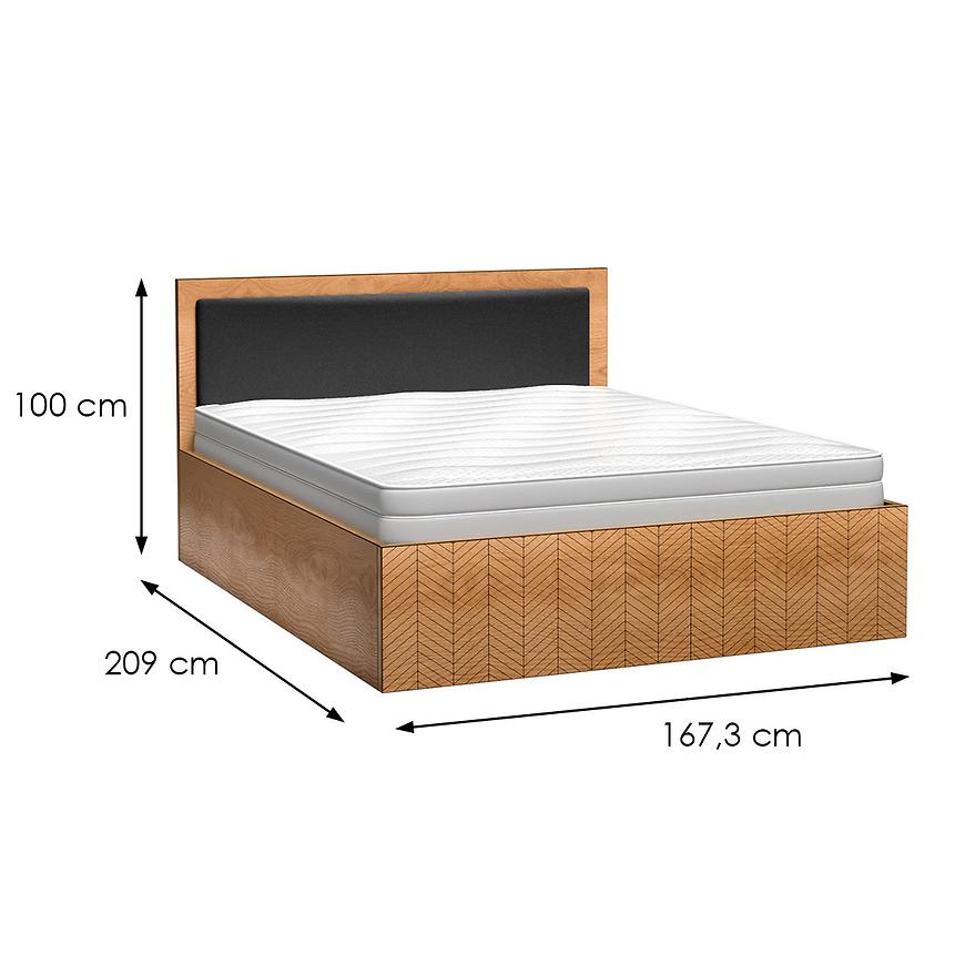 Łóżko 160x200 Fonti F12 w kolorze Dąb Karmel to marzenie o komfortowym i stylowym śnie. Łóżko o wymiarach 100 cm wysokości, 167,3 cm szerokości i 209 cm głębokości, to mebel, który nie tylko spełni swoje praktyczne zadanie, ale także stanie się wyjątkowym elementem Twojej sypialni.