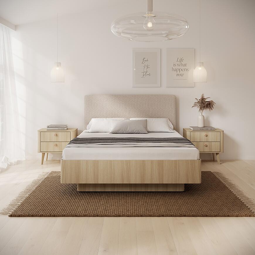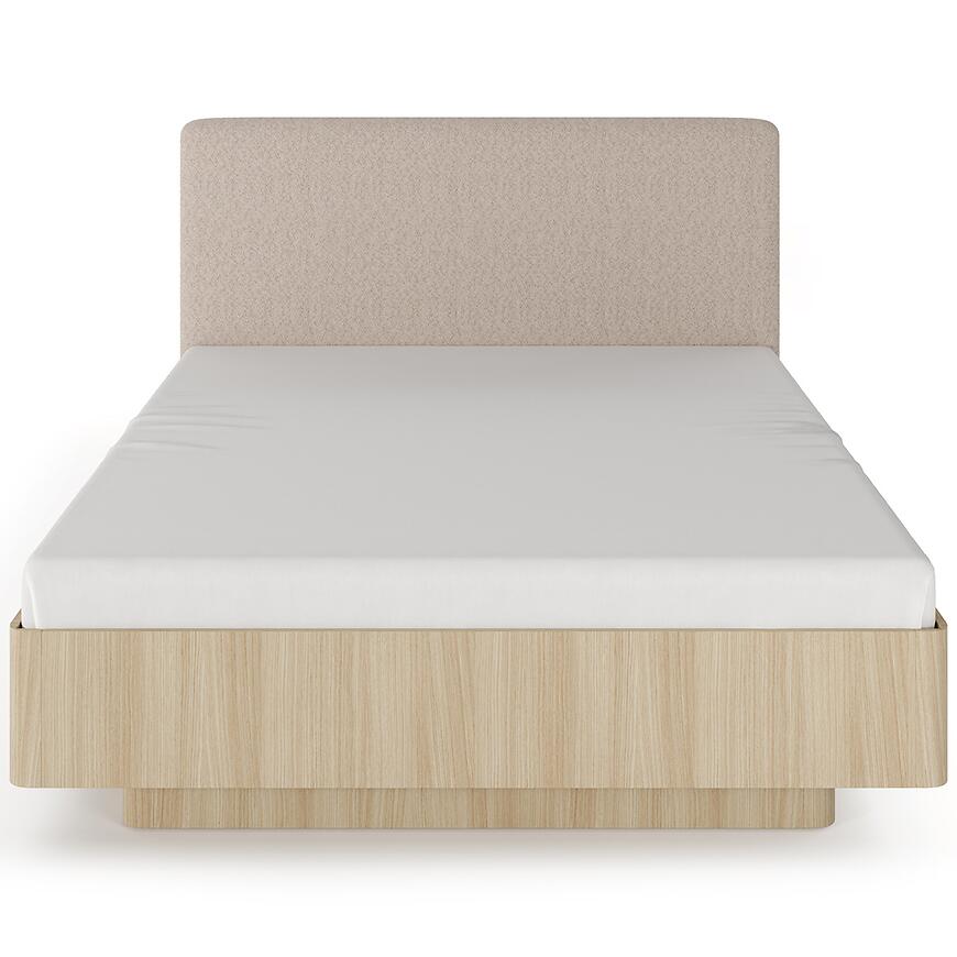 Łóżko 160x200 Viki Dąb Barista to nowoczesny mebel wykonany z trwałej płyty wiórowej laminowanej w kolorze dąb barista, który nadaje wnętrzu ciepły, naturalny charakter. Tapicerowane wykończenie podkreśla elegancję i zapewnia komfort użytkowania. Powierzchnia spania 160x200 cm oraz wymiar stelaża 160x200 cm gwarantują wygodę dla dwóch osób.