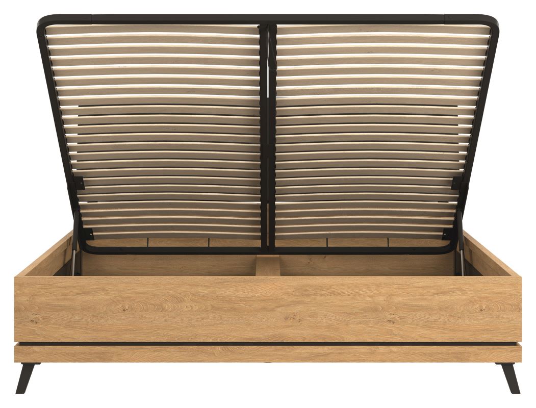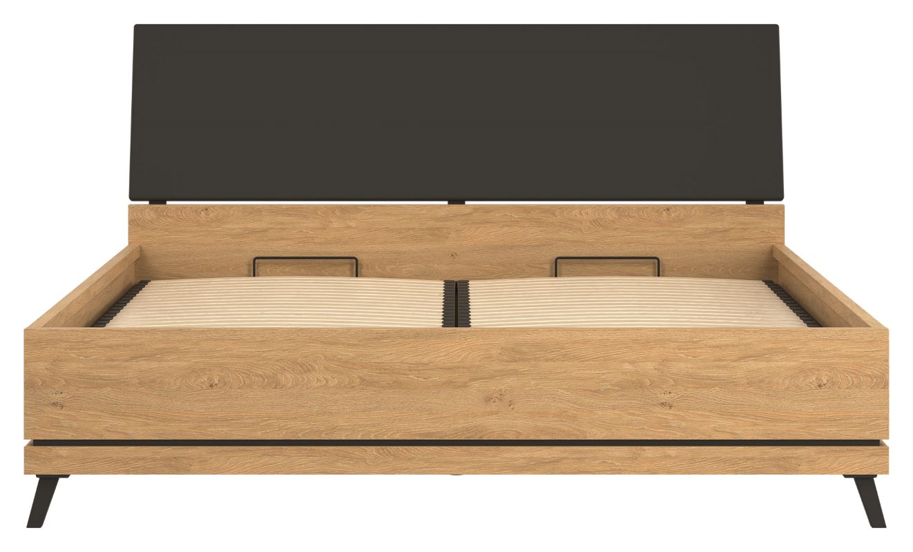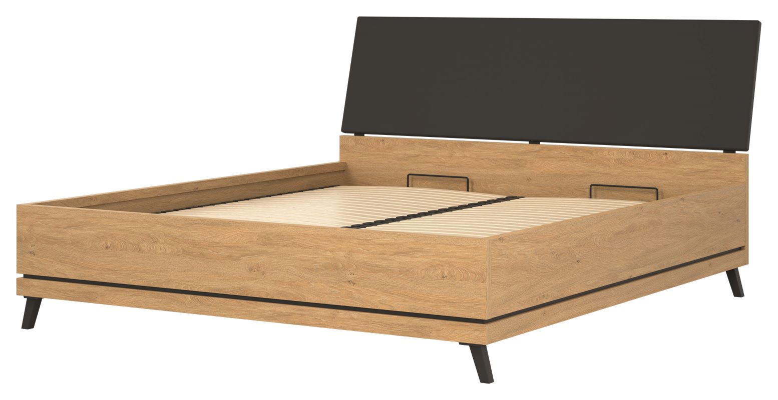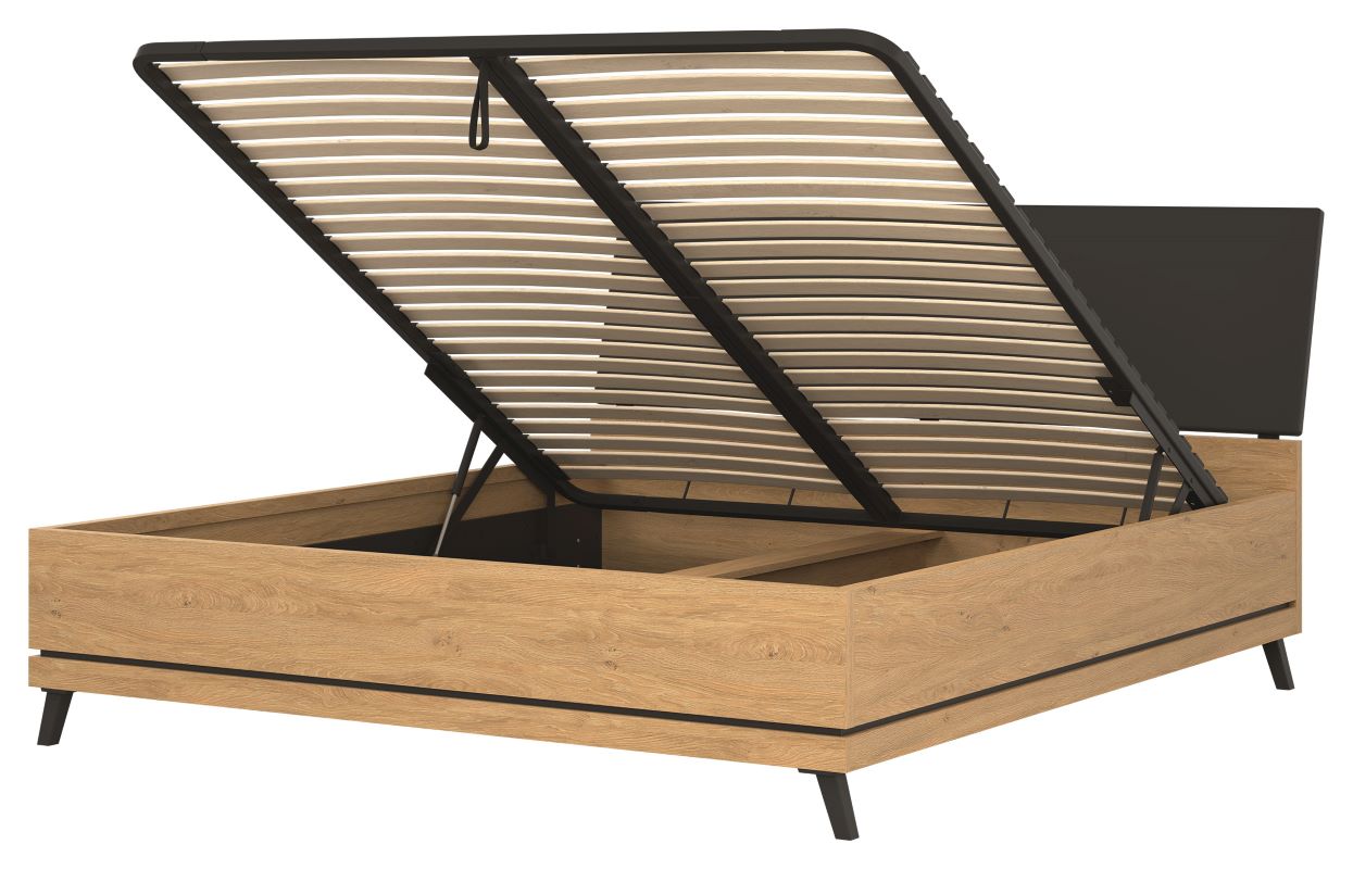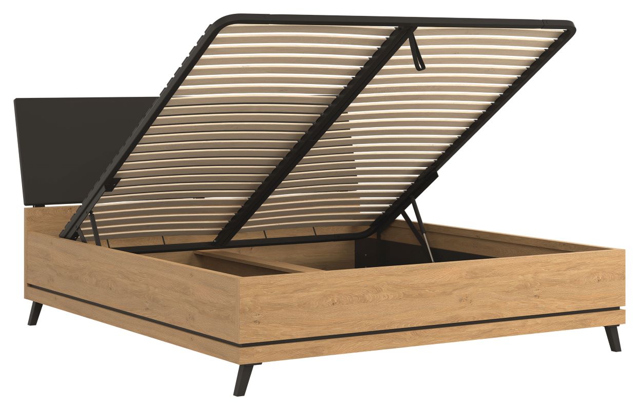 Atutem łóżka jest fakt, że posiada w zestawie pojemnik na pościel z wbudowanym stelażem na metalowej ramie z listwami drewnianymi pod materac. Materac nie należy do zestawu, istnieje możliwość zakupu osobno. Łoże dostępne jest w trzech wymiarach: 120 cm, 140 cm, 160 cm, 180 cm.