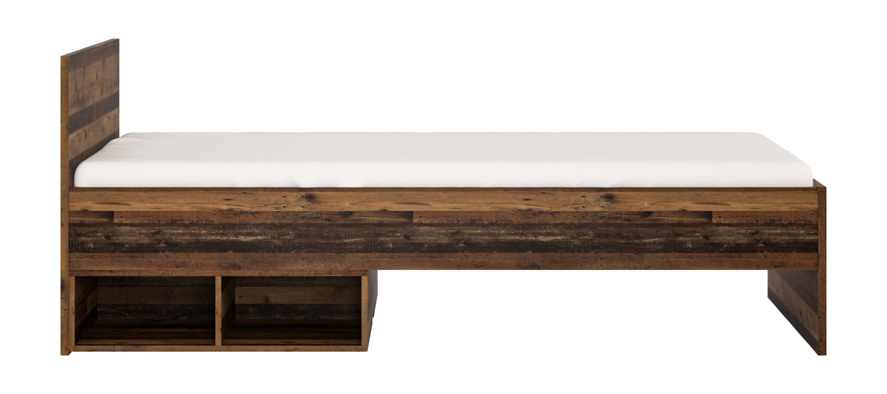 Szczyty i boki łóżka wykonano z płyty wiórowej laminowanej, co zapewnia solidność i trwałość podczas codziennego użytkowania w pokoju młodzieżowym. Łóżko jest stabilne i estetyczne, a jego prosty design wpisuje się w nowoczesne aranżacje.