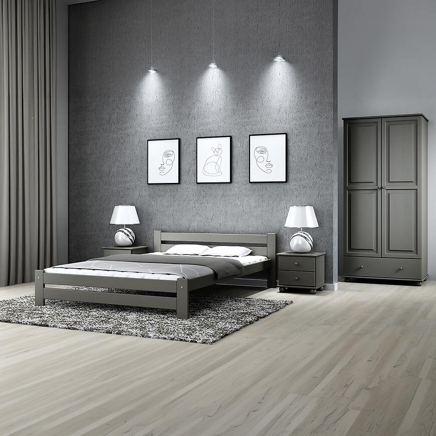 Łóżko Agata 180 w szarym wybarwieniu to propozycja łącząca naturalne drewno z minimalistycznym, nowoczesnym designem. Stonowana kolorystyka nadaje wnętrzu spokojny, elegancki charakter, a prosta forma sprawia, że mebel łatwo dopasować do różnych aranżacji.