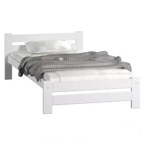 Łóżko zostało wykonane z drewna, co zapewnia solidność, trwałość i stabilność przez wiele lat użytkowania. Minimalistyczna forma łóżka podkreśla prostotę i elegancję, a matowe wykończenie w białym kolorze dodaje lekkości i sprawia, że łóżko pasuje do różnych aranżacji wnętrz.