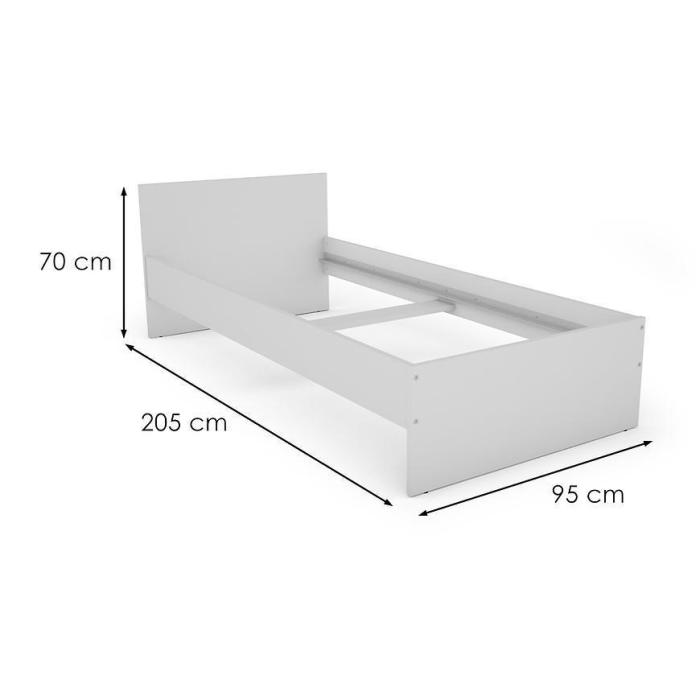Łóżko Alan o wymiarach 90x200 wykonane jest z płyty wiórowej laminowanej o wybarwieniu białym. Idealnie wkomponuje się do aranżacji klasycznych i minimalistycznych ze względu na prostą konstrukcję.