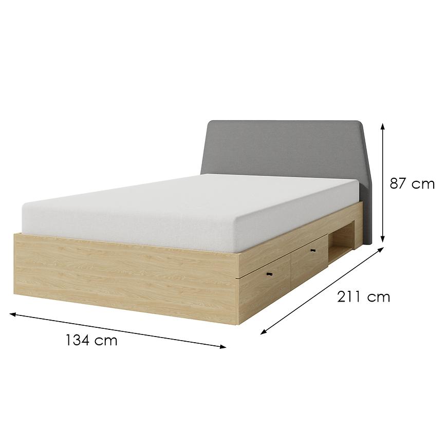 Łóżko Alessio AE13 120 Dąb to nowoczesny i funkcjonalny mebel, wykonany z wysokiej jakości płyty wiórowej laminowanej w jasnym, drewnopodobnym wybarwieniu dębu. Oferuje komfortową powierzchnię spania 120x200 cm i jest wyposażone w stelaż w komplecie, umożliwiający szybki montaż. Łóżko posiada dwa pojemne schowki na pościel, łącząc praktyczność z eleganckim designem. Wymiary 87x134x211 cm oraz matowe wykończenie podkreślają nowoczesny charakter kolekcji ALESSIO. To stylowe i trwałe łóżko, które łączy estetykę, wygodę i funkcjonalność.