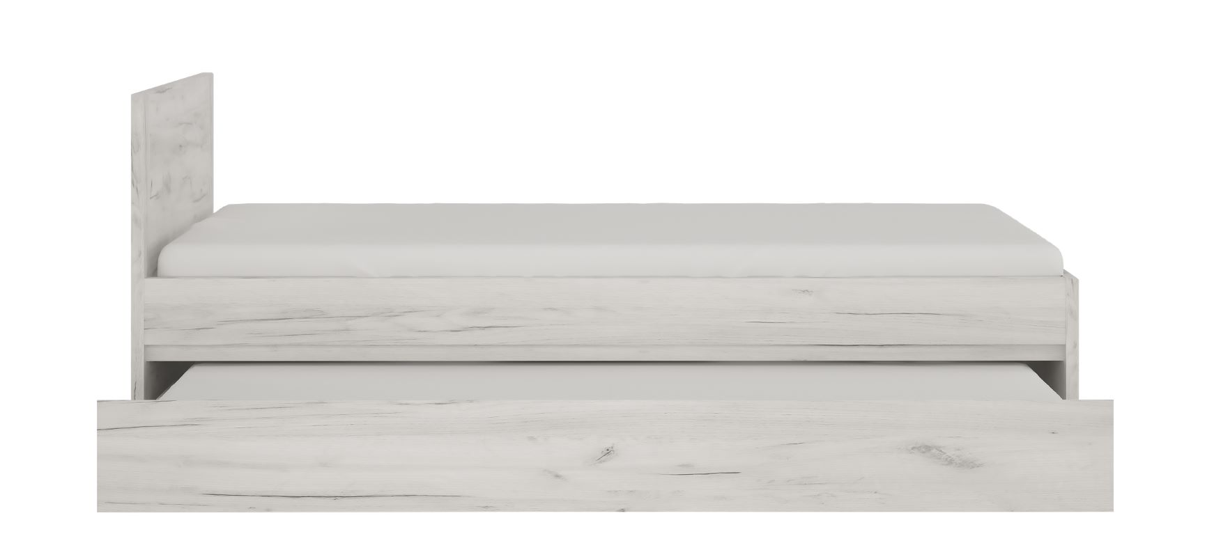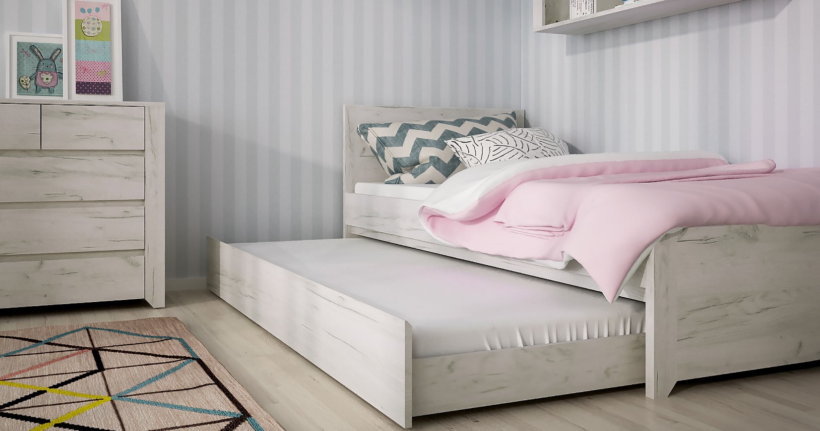 Łóżko wyposażone jest w praktyczną szufladę na rolkach prowadzących, która zapewnia dodatkową przestrzeń na pościel, zabawki czy ubrania. Szuflada łatwo wysuwa się i chowa, co pozwala utrzymać porządek w pokoju.