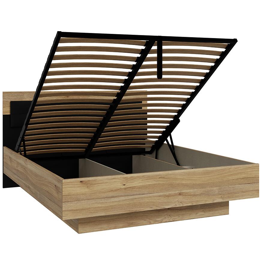 Łóżko wyposażono w dwa obszerne pojemniki na pościel, które pomieszczą koce, poduszki i inne tekstylia. Dzięki gazowemu podnośnikowi i automatycznemu systemowi otwierania, dostęp do schowków jest szybki i wygodny. To rozwiązanie, które pozwala maksymalnie wykorzystać przestrzeń sypialni i utrzymać porządek bez dodatkowych mebli.