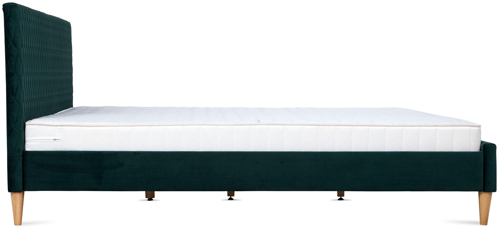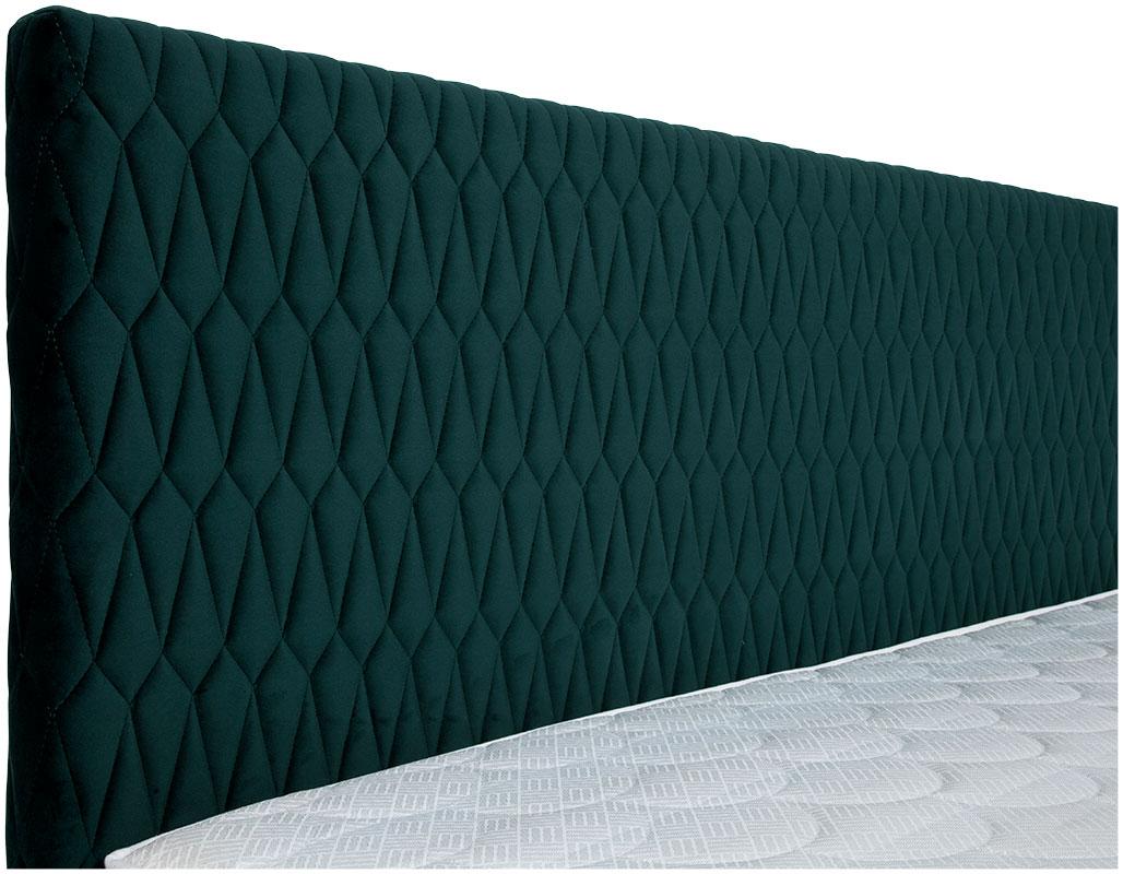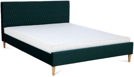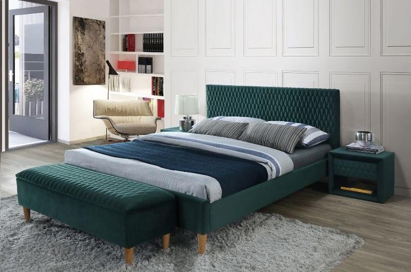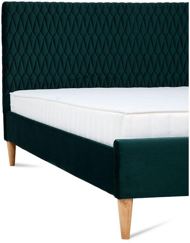 - korpus łóżka oraz zagłówek tapicerowany aksamitną tkaniną w kolorze zielonym