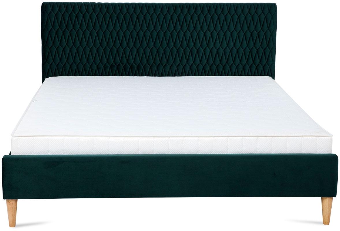 Łóżko Azurro to prawdziwie królewska propozycja, nadająca sypialni wytwornego i eleganckiego charakteru. Aksamitna i przyjemna w dotyku tapicerka oraz szlachetny, ciemnozielony kolor tworzą wyjątkową całość, która odmieni wygląd każdego, nawet najbardziej wymagającego pomieszczenia. Nowoczesny design został osiągnięty dzięki ozdobnym pikowaniom w miejscu zagłówka. Dwuosobowe łóżko Azurro należy do stylowej kolekcji mebli Azurro. Na uwagę zasługują urokliwe przeszycia w kształcie diamentów. Prezentowany mebel osadzono na delikatnych, lecz solidnie wykonanych drewnianych nóżkach w kolorze ponadczasowego dębu. Ramę łóżka należy wyposażyć w materac o rozmiarach 160x200 cm. Mebel w swoim zestawie posiada stelaż z elastycznymi listwami osadzonymi w specjalnych uchwytach. Łóżko Azurro zostało zapakowane w paczki do samodzielnego montażu.