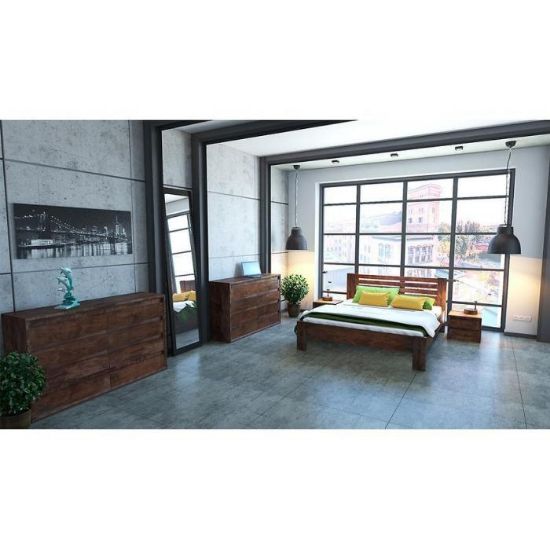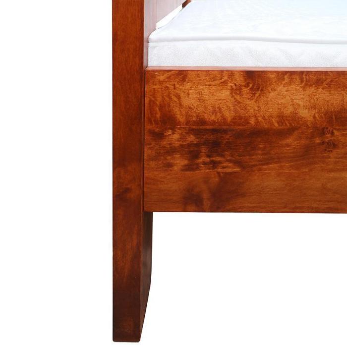 Klasyczne łóżko Bergen wykonane z drewna (olcha/dąb), które zapewnia stabilność całej konstrukcji. Łóżko posiada oparcie, dzięki czemu leżenie w pozycji półsiedzącej jest bardziej wygodne i odprężające dla pleców. Łożko w ciemnym odcieniu drewna świetnie wpisze się w klasyczne i nowoczesne wnętrza.
