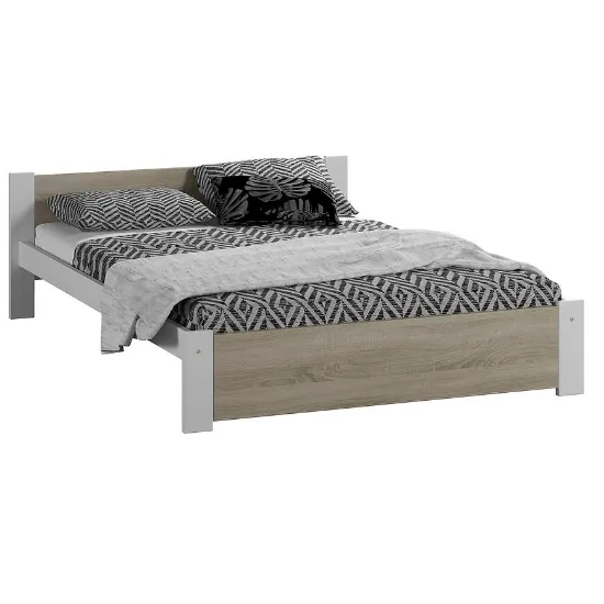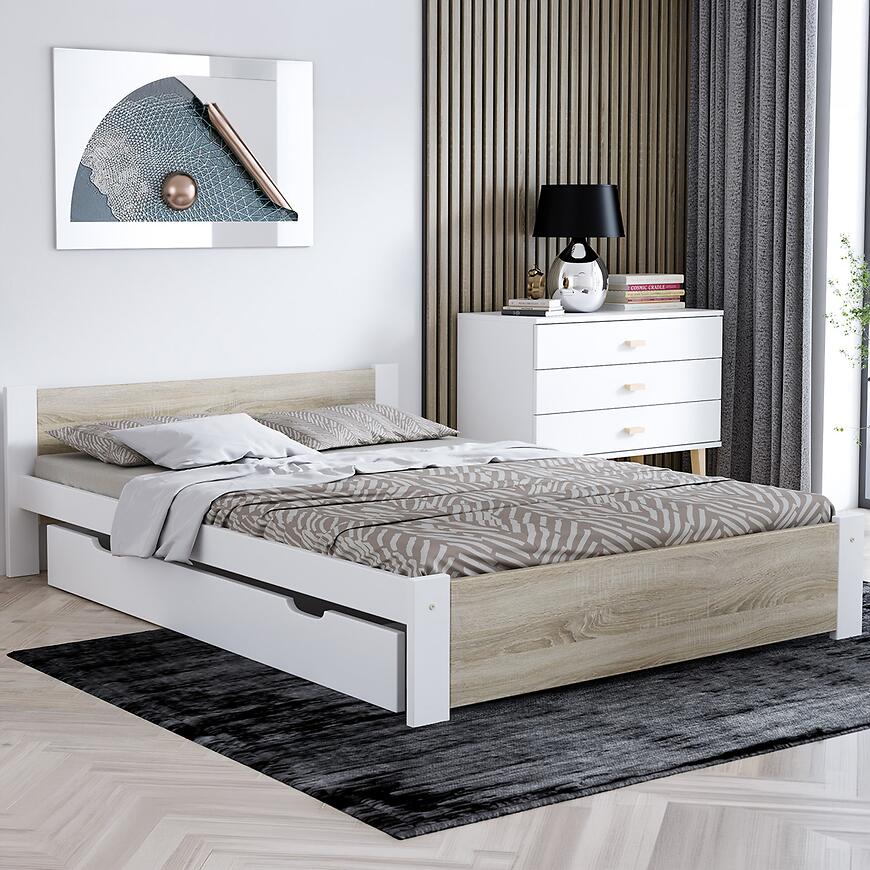 Łóżko białe z dębem sonoma – naturalny kontrast
