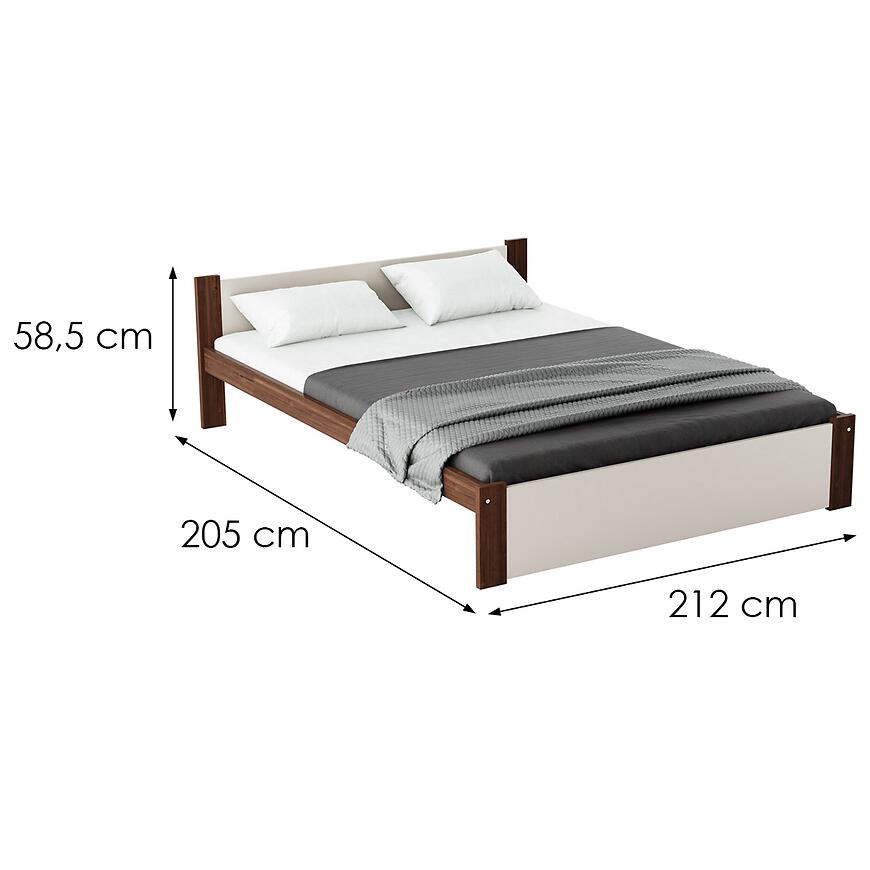 Szerokość 212 cm, długość 205 cm i wysokość 58,5 cm zapewniają maksymalny komfort podczas snu. Powierzchnia spania 200x200 cm jest doskonała dla par oraz osób ceniących przestronny wypoczynek. Model sprzedawany jest bez materaca i stelaża, co pozwala dobrać je według indywidualnych potrzeb.