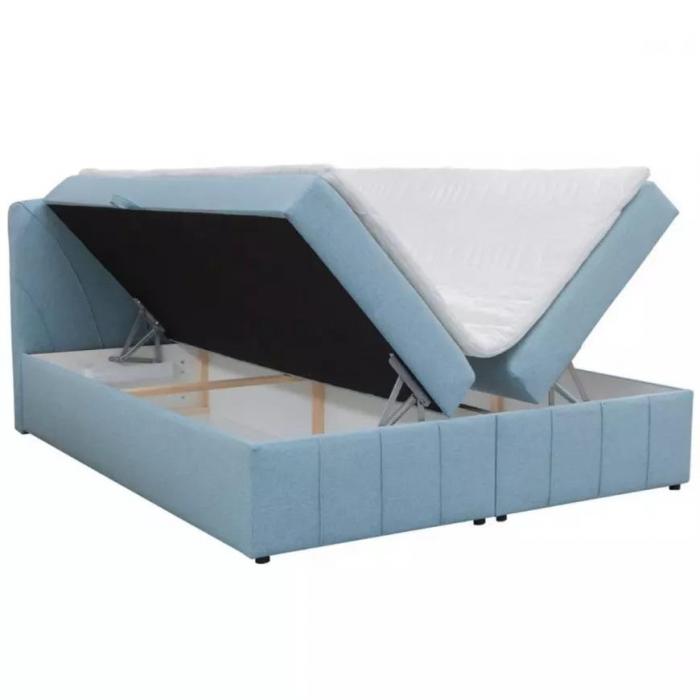 Łóżko posiada automat na sprężynie, który umożliwia łatwe podnoszenie i dostęp do dwóch pojemników na pościel, co pozwala praktycznie wykorzystać przestrzeń i utrzymać porządek w sypialni. Produkt waży 140 kg, wymaga samodzielnego montażu i nie posiada oświetlenia. Solidna konstrukcja zapewnia stabilność i trwałość na lata.