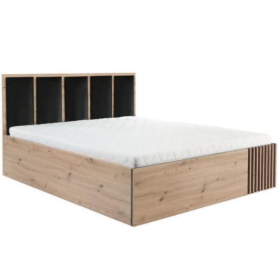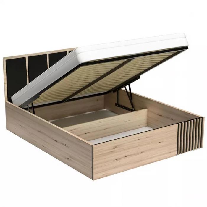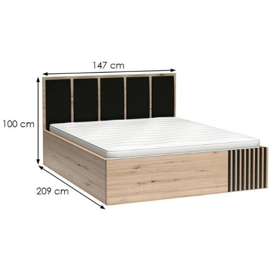 Łóżko Cali to mebel który wpasuje się w niejedną sypialnie. Łóżko sypialniane z zagłówkiem wykonane zostało z płyty wiórowej laminowanej. Posiada pojemnik na pościel, a powierzchnia spania wynosi 140x200cm.