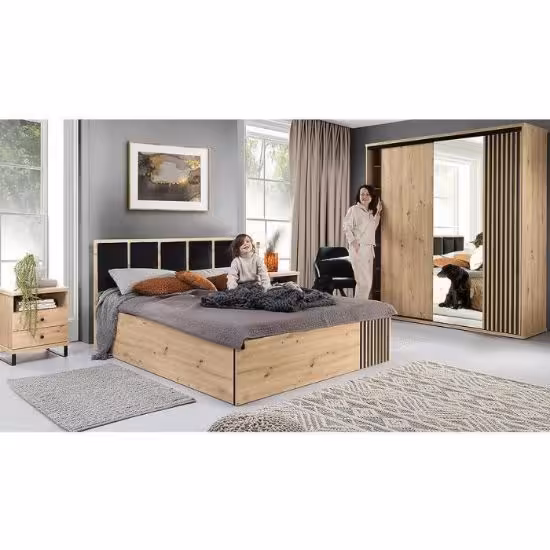 Kolekcja mebli do sypialni Cali oferuje eleganckie i funkcjonalne rozwiązania, które idealnie pasują do nowoczesnych wnętrz. Wykonane z wysokiej jakości płyty wiórowej laminowanej, meble wyróżniają się trwałością i łatwością w utrzymaniu. Dekor w kolorze dąb artisan nadaje im naturalny i przyjemny wygląd.