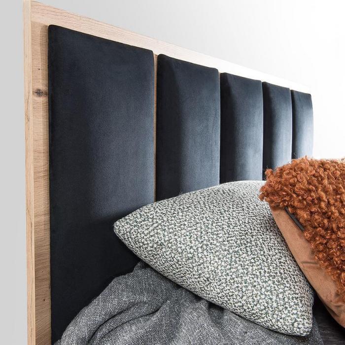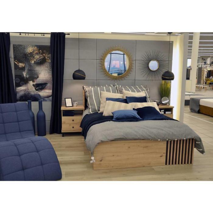 Łóżko Cali to mebel który wpasuje się w niejedną sypialnie. Łóżko sypialniane z zagłówkiem wykonane zostało z płyty wiórowej laminowanej. Posiada pojemnik na pościel, a powierzchnia spania wynosi 160x200cm.