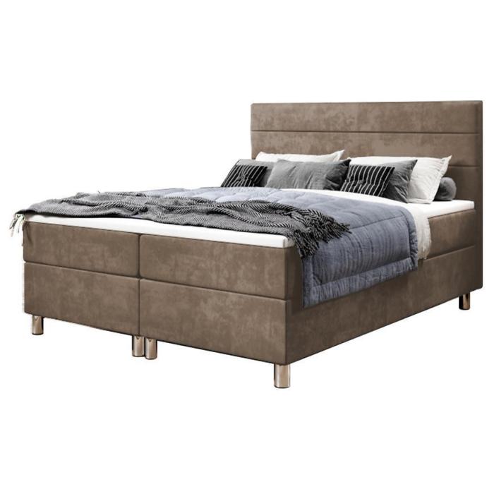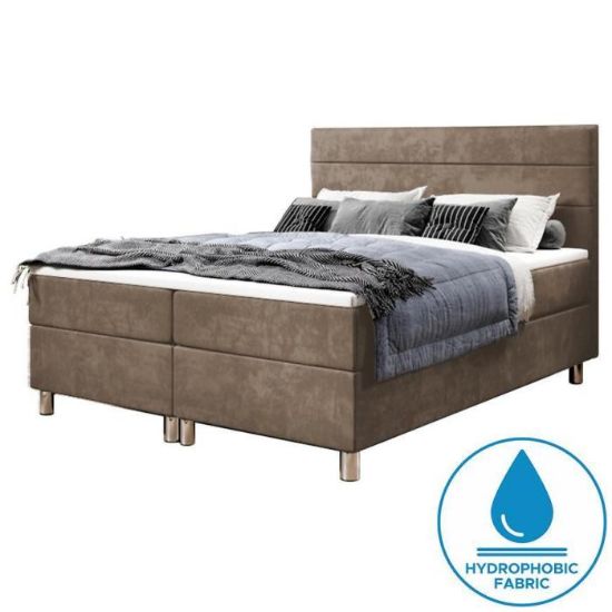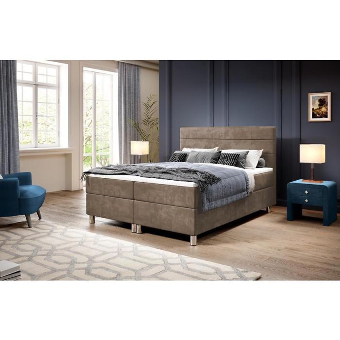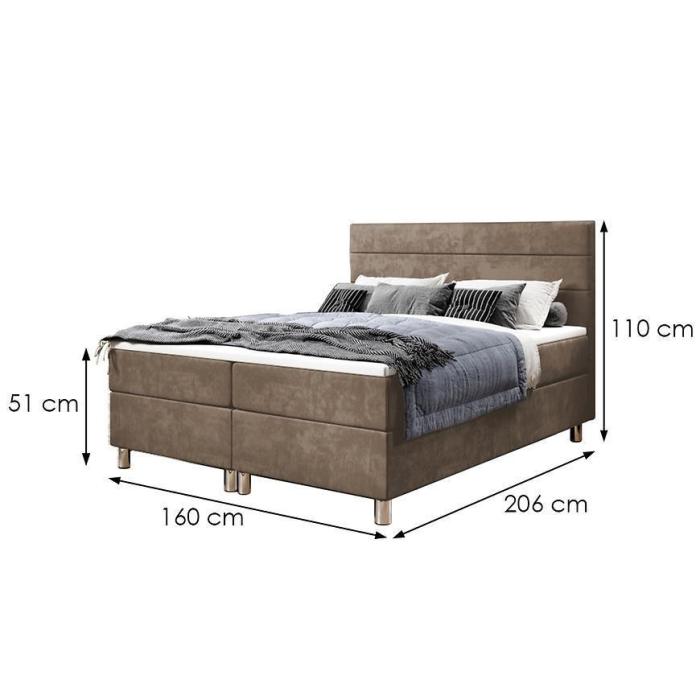 Ozdobne zagłowie tworzy ciekawy design, który wpisze się w niejedną sypialnie. Kolor berżowy nada ponadczasowego wyglądu. Powierzchnia spania wynosi 160x200.