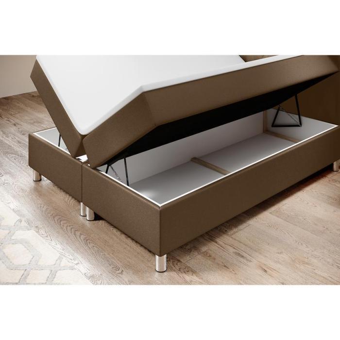 Łóżko CALIPSO to interesujący mebel dla osób ceniących sobie wygodę i atrakcyjny wygląd. Wyposażone zostało w dwa pojemniki na pościel, które otwierane są z boku. W komplecie dołączony jest stelaż oraz materac średnio-twardy typu bonell z topperem. Posiada sprężynowy podnośnik. Całość wykończona tkaniną hydrofobową. Nogi są chromowane wykonane z metalu.