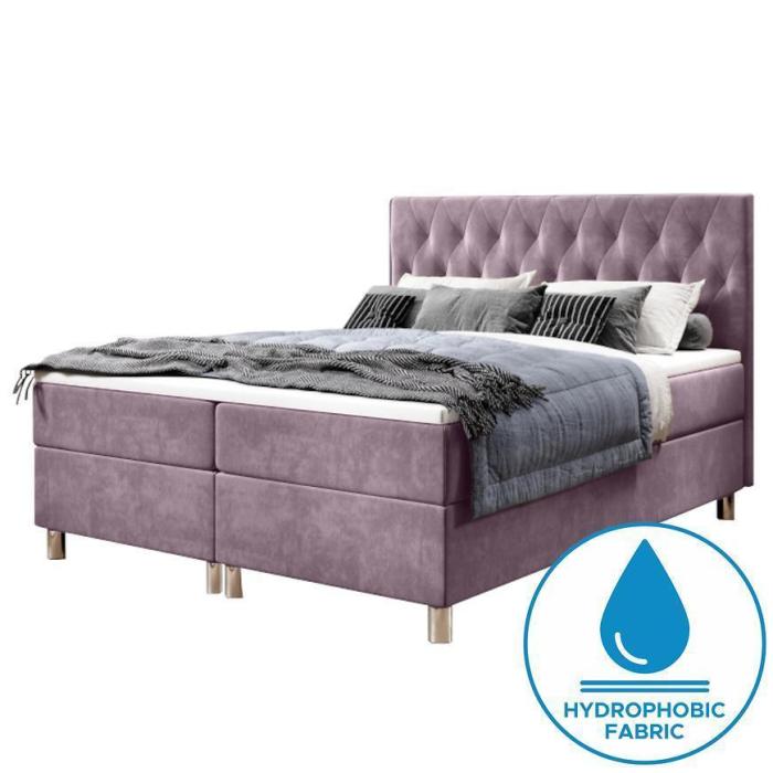 Łóżko kontynentalne Calipso nie tylko spełnia walory estetyczno-wizualne, ale zapewnia także wygodę i komfort podczas użytkowania. Łożko tapicerowane jest aksamitną tkaniną, a dodatkowo lekkości dodają również montowane do bryly chromowane nóżki. Łóżko posiada także dwa pojemniki do przechowywania np. pościeli czy poduszek.
