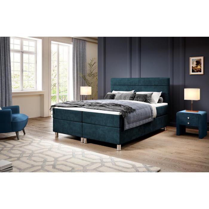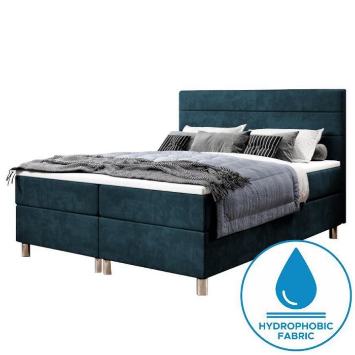 Łóżko kontynentalne Calipso nie tylko spełnia walory estetyczno-wizualne, ale zapewnia także wygodę i komfort podczas użytkowania. Łożko tapicerowane jest aksamitną tkaniną, a dodatkowo lekkości dodają również montowane do bryly chromowane nóżki. Łóżko posiada także dwa pojemniki do przechowywania np. pościeli czy poduszek.