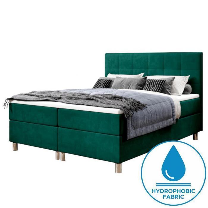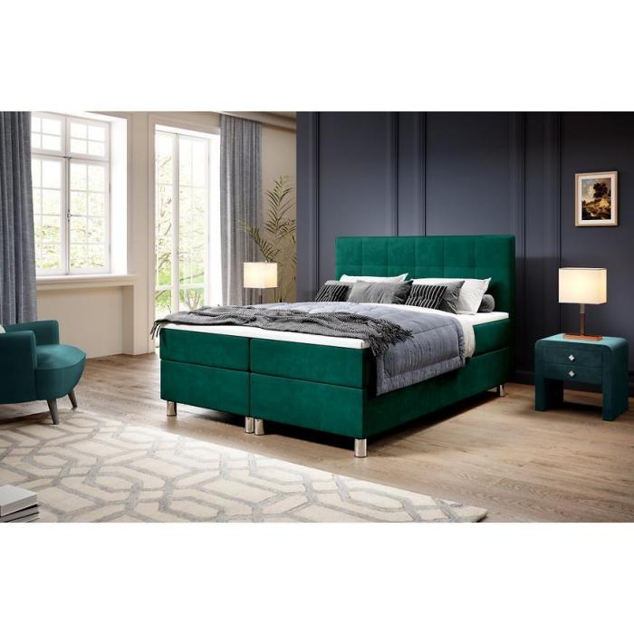 Łóżko kontynentalne Calipso nie tylko spełnia walory estetyczno-wizualne, ale zapewnia także wygodę i komfort podczas użytkowania. Łożko tapicerowane jest aksamitną tkaniną, a dodatkowo lekkości dodają również montowane do bryły chromowane nóżki. Łóżko posiada także dwa pojemniki do przechowywania np. pościeli czy poduszek.