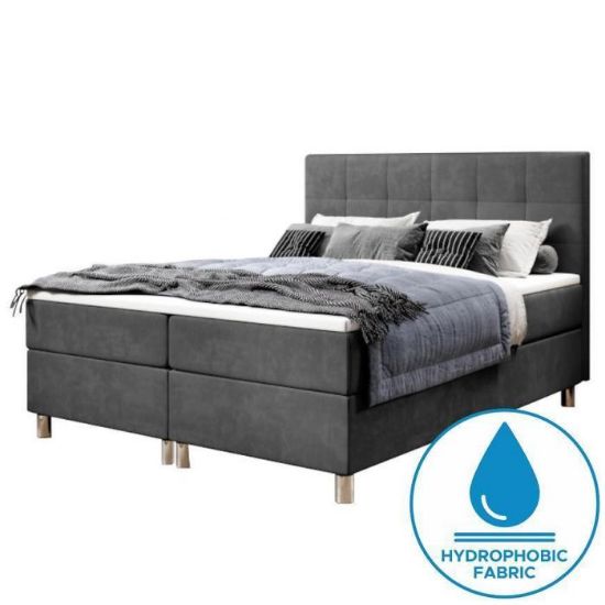 Łóżko kontynentalne Calipso nie tylko spełnia walory estetyczno-wizualne, ale zapewnia także wygodę i komfort podczas użytkowania. Łożko tapicerowane jest aksamitną tkaniną, a dodatkowo lekkości dodają również montowane do bryły chromowane nóżki. Łóżko posiada także dwa pojemniki do przechowywania np. pościeli czy poduszek.