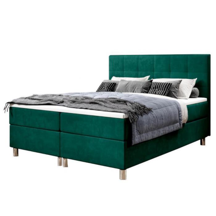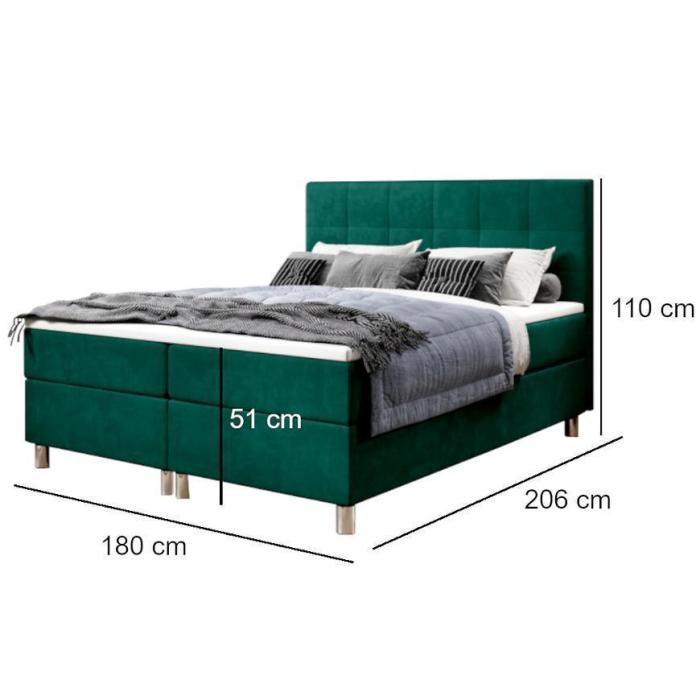 Łóżko kontynentalne Calipso to idealne rozwiązanie dla osób, dla których ważną rolę spełnia zarówno efekt wizualny jak i komfort użytkowania. Łóżko tapicerowane jest aksamitną tkaniną, która jest hydrofobowa. Dodatkową wygodę zapewni bonellowy materac oraz topper. Łóżko zostało wyposażone w dwa pojemniki do przechowywania. Posiada chromowane nóżki.
