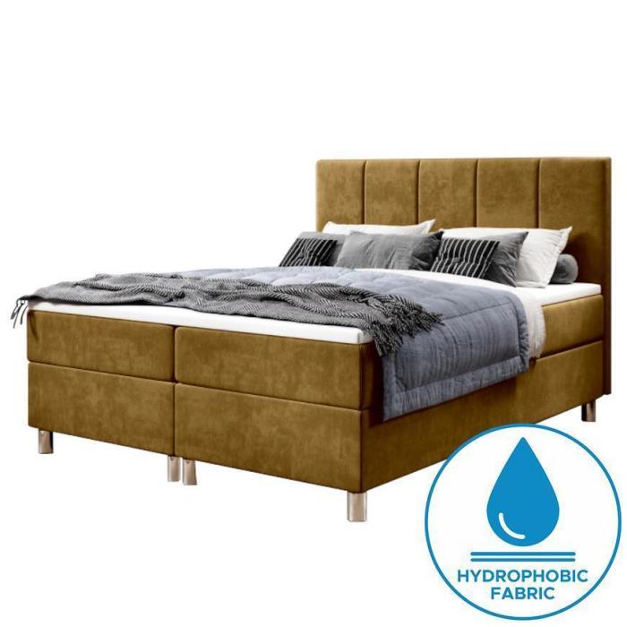 Łóżko kontynentalne Calipso nie tylko spełnia walory estetyczno-wizualne, ale zapewnia także wygodę i komfort podczas użytkowania. Łożko tapicerowane jest aksamitną tkaniną, a dodatkowo lekkości dodają również montowane do bryly chromowane nóżki. Łóżko posiada także dwa pojemniki do przechowywania np. pościeli czy poduszek.