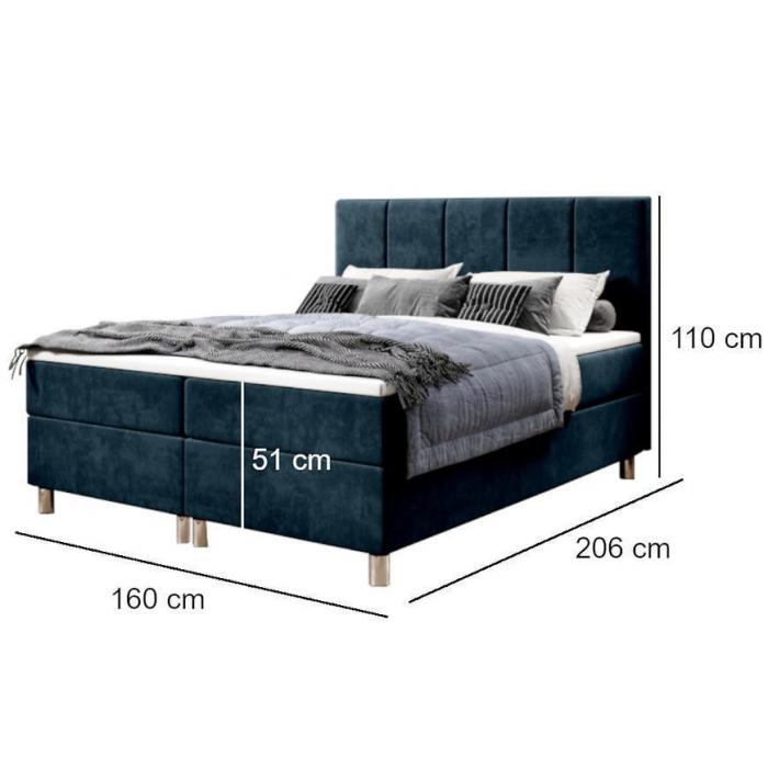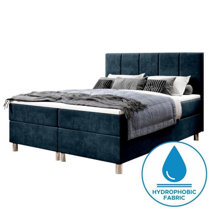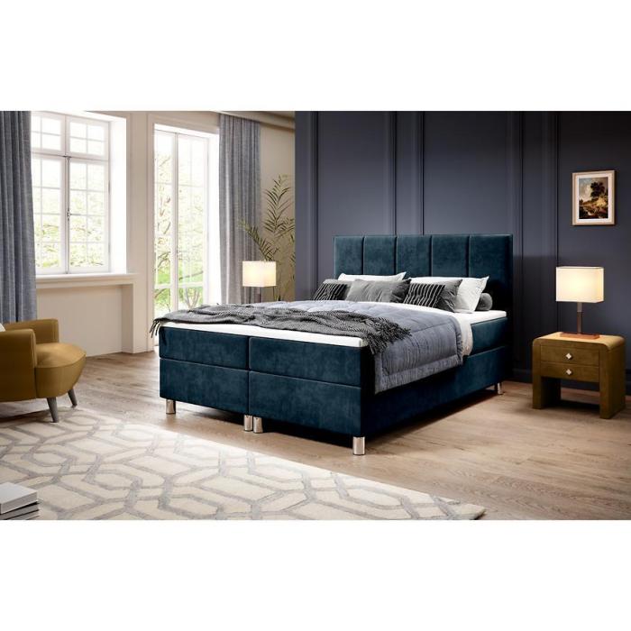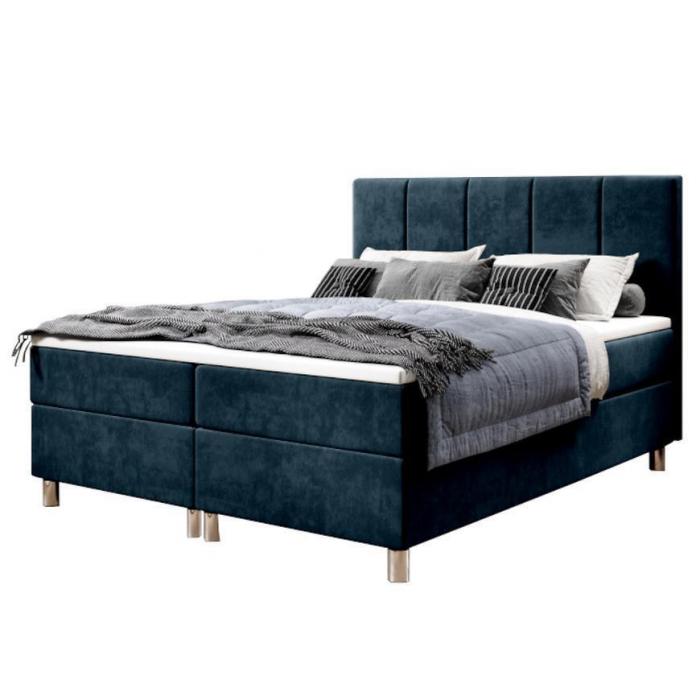 Łóżko kontynentalne Calipso nie tylko spełnia walory estetyczno-wizualne, ale zapewnia także wygodę i komfort podczas użytkowania. Łożko tapicerowane jest aksamitną tkaniną, a dodatkowo lekkości dodają również montowane do bryły chromowane nóżki. Łóżko posiada także dwa pojemniki do przechowywania np. pościeli czy poduszek.