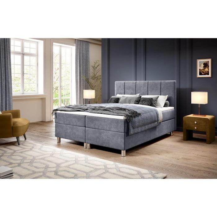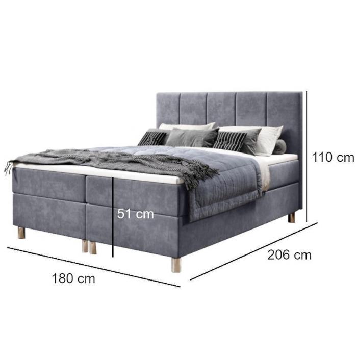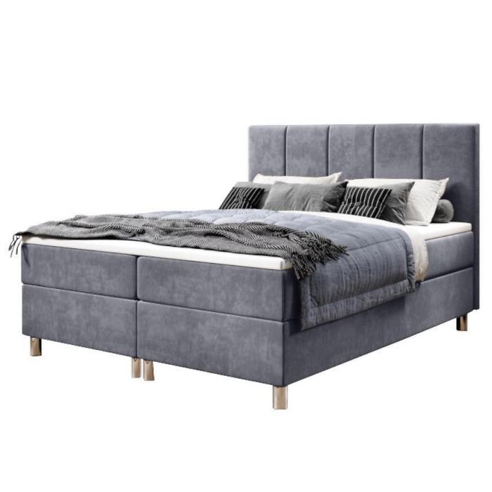 Łóżko kontynentalne Calipso to idealne rozwiązanie dla osób, dla których ważną rolę spełnia zarówno efekt wizualny jak i komfort użytkowania. Łóżko tapicerowane jest aksamitną tkaniną, która jest hydrofobowa. Dodatkową wygodę zapewni bonellowy materac oraz topper. Łóżko zostało wyposażone w dwa pojemniki do przechowywania. Posiada chromowane nóżki.