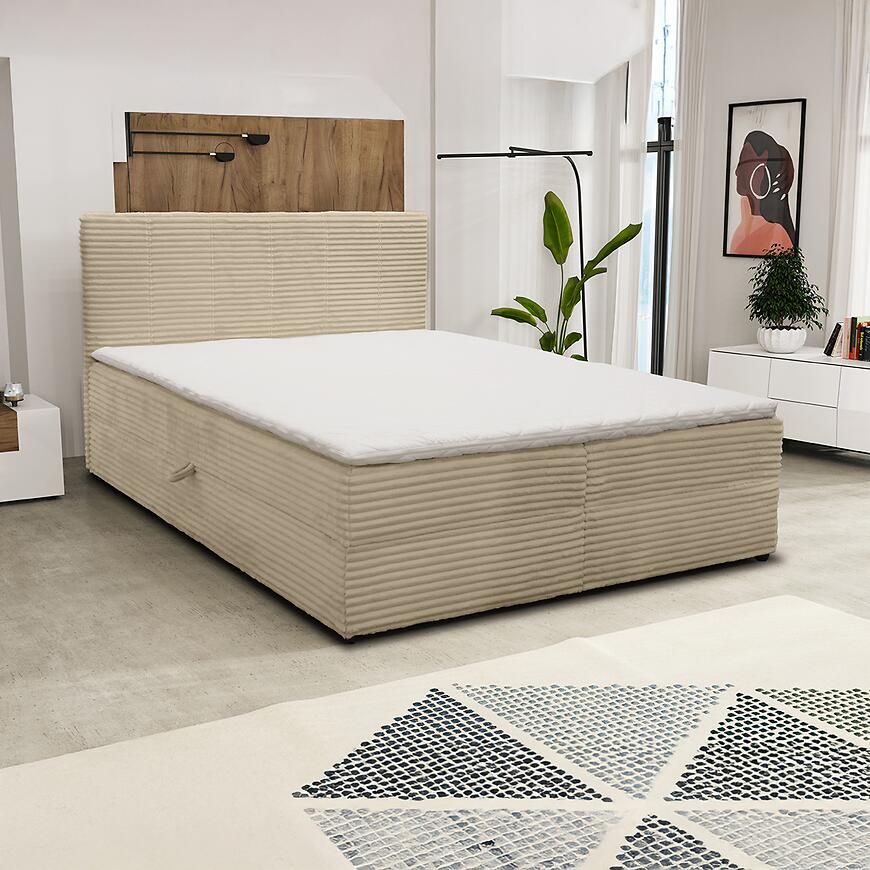 Łóżko Calipso V 180x200 w kolorze beżowym to idealne rozwiązanie dla osób, które szukają przestronnego i wygodnego łóżka do sypialni. Model z kolekcji CALIPSO łączy nowoczesny styl z funkcjonalnością. Beżowa tapicerka z tkaniny nadaje wnętrzu przytulności i łatwo współgra z różnymi dodatkami, wprowadzając harmonię i spokój do przestrzeni.