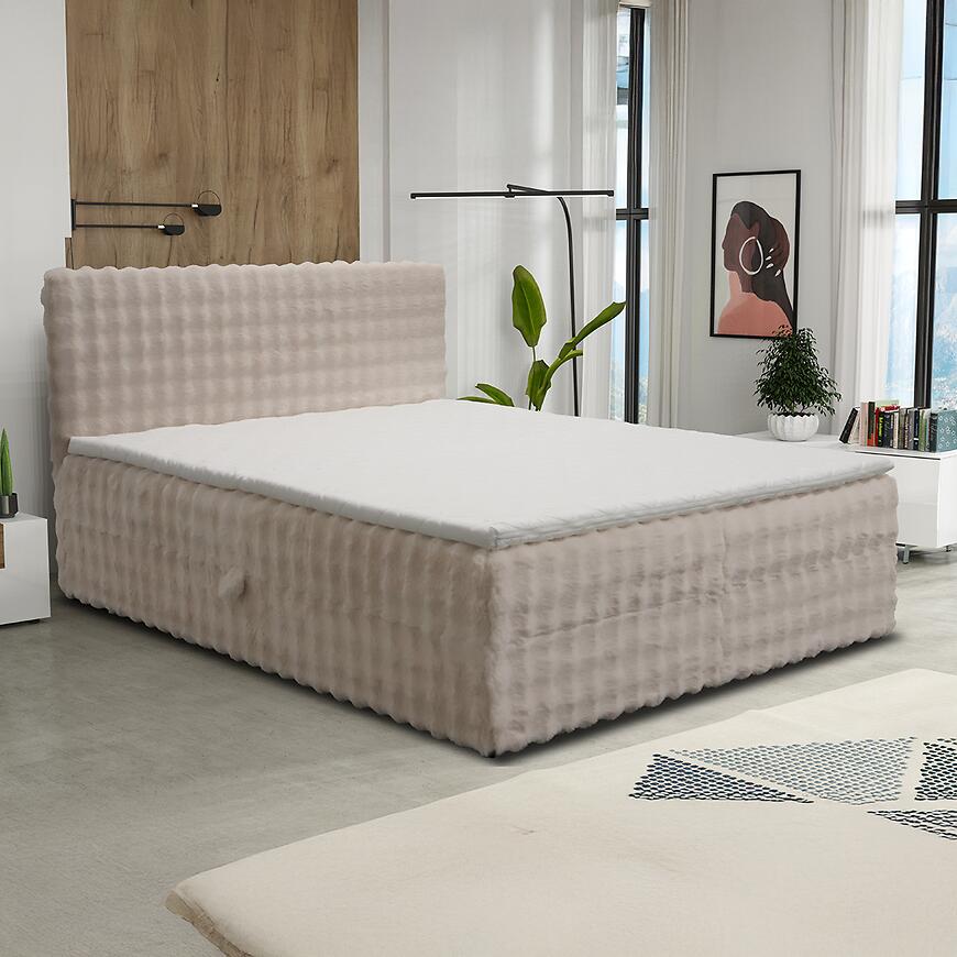 Beżowe łóżko do sypialni w stylu nowoczesnym