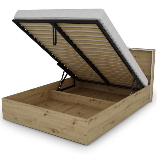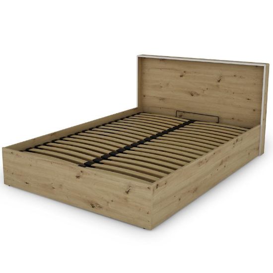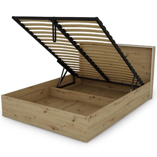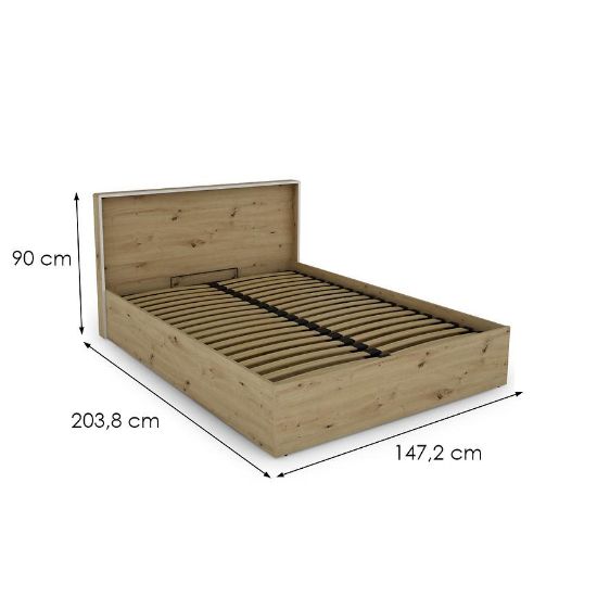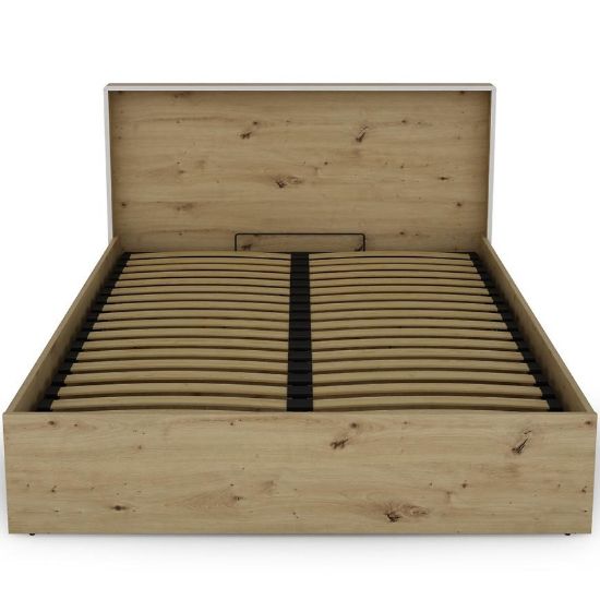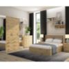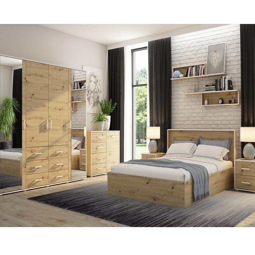 Kolor dąb artisan/biały wprowadza subtelny kontrast pomiędzy ciepłem drewna a świeżością bieli. To połączenie doskonale oddaje nowoczesny charakter mebla, jednocześnie wprowadzając do sypialni przyjemny, jasny akcent. Wybarwienie jasne drewnopodobne zachwyca naturalnością, przypominając o pięknie autentycznego drewna, choć wykonane z trwałej i łatwej w pielęgnacji płyty wiórowej laminowanej.