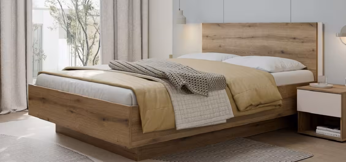 Sypialnia Cherino to nowoczesna kolekcja łącząca modną kolorystykę z prostym designem. Stonowane fronty w kolorze piaskowym (sand) w połączeniu z kolorystyką dąb evoke nadadzą pomieszczeniu ciepła i idealnej harmonii. Komfort w użytkowaniu zapewniają szuflady z systemem pełnego wysuwu oraz podchwytami. Szafa przesuwna z nietypowym kształtem frontu pozwala na łatwy i szybki dostęp do pojemnych szuflad. Funkcjonalność szafy zapewnia pełne wyposażenie w standardzie (3 półki, drążek, 3 szuflady i hamulce). Szuflady z prowadnicami pełny wysuw. Drzwi komody wyposażone w samozamykacze drzwiowe.