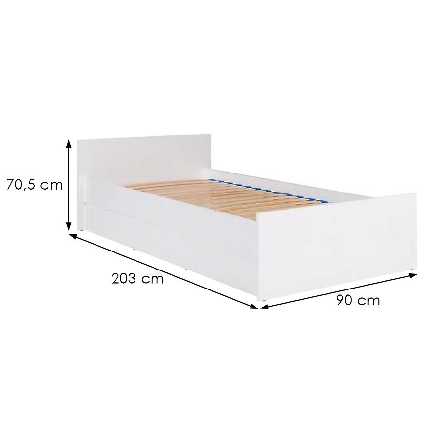 Łóżko Cosmo to elegancki mebel, który doskonale wkomponuje się w nowoczesne wnętrza. Mebel o wymiarach 90 cm szerokości, 70,5 cm wysokości i 203 cm głębokości, zapewnia wygodne miejsce do snu. Powierzchnia spania wynosi 80x200 cm, wystarczająco dla jednej osoby.