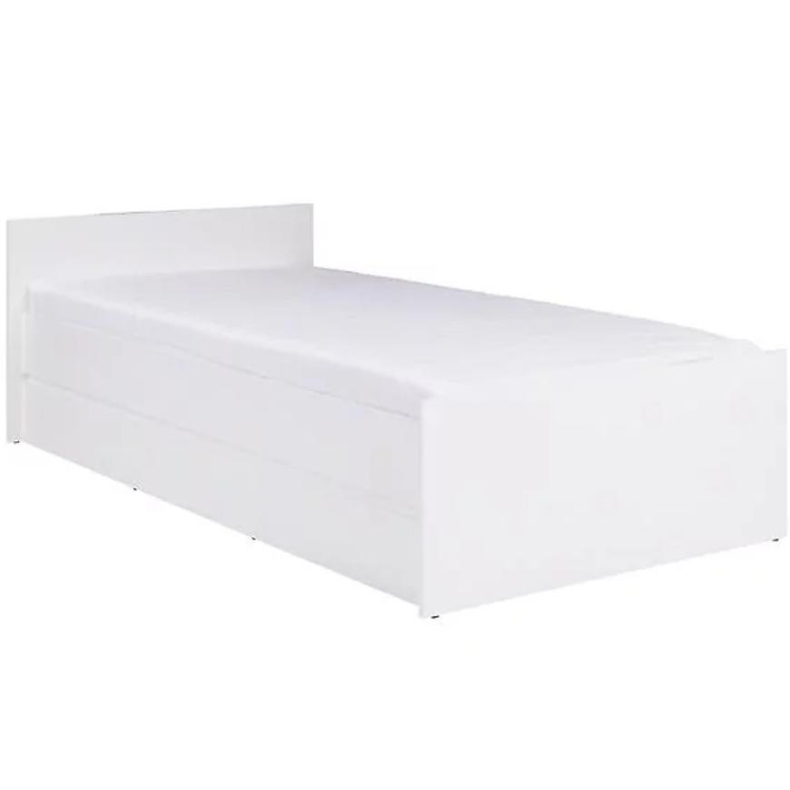 Fronty łóżka Cosmo utrzymane są w białym kolorze, co nadaje meblowi nowoczesnego charakteru. Zarówno fronty, jak i korpus mebla mają matowe wykończenie. Konstrukcja frontów i korpusu oparta jest na solidnej płycie wiórowej laminowanej, co zapewnia trwałość i odporność na uszkodzenia.