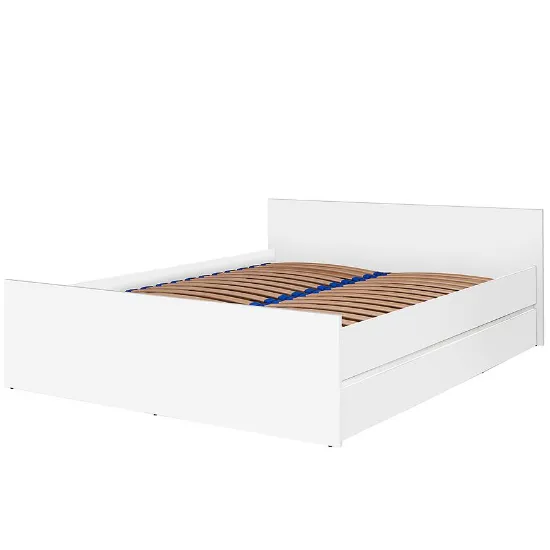 Model nie posiada pojemnika na pościel, co pozwala zachować prostą i lekką konstrukcję. Brak tapicerowania oraz dekoracyjnych elementów sprawia, że łóżko prezentuje się schludnie i uniwersalnie.