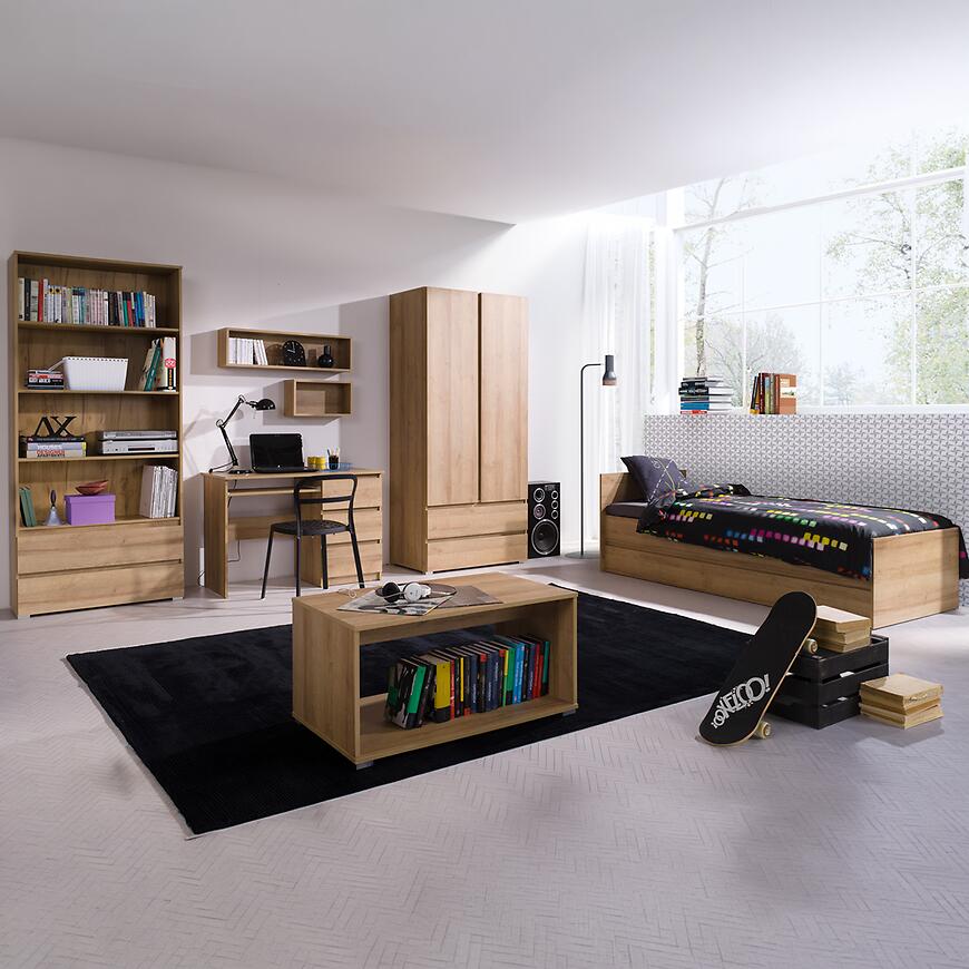 Łóżko Cosmo C15 dąb riviera łączy estetykę drewna z nowoczesnym stylem. Jasne wybarwienie i obecność stelaża w zestawie sprawiają, że mebel jest wygodny, funkcjonalny i idealny do codziennego użytku.