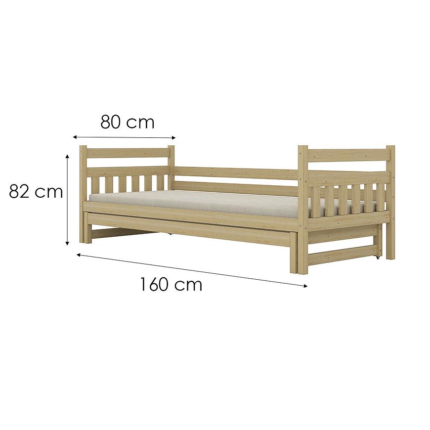 Łóżko Dawid z dodatkowym spaniem łączy solidne wykonanie z litego drewna, zabezpieczoną lakierowaną powierzchnię oraz praktyczną funkcję drugiego miejsca do spania. Naturalne wybarwienie i gładkie wykończenie podkreślają estetykę drewna oraz zwiększają odporność na codzienne użytkowanie. Prosta forma i stabilna konstrukcja sprawiają, że drewniane łóżko z wysuwanym spaniem to praktyczny wybór do wnętrz nowoczesnych i klasycznych.
