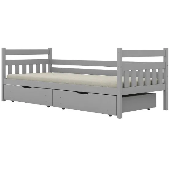 Łóżko Dawid 90x180 szary łączy elegancki, nowoczesny design z praktycznymi funkcjami. Szary kolor w matowym wykończeniu nadaje łóżku stonowany i uniwersalny charakter, idealny do różnych aranżacji wnętrz. Solidna konstrukcja z drewna zapewnia trwałość i stabilność, a stelaż w komplecie umożliwia dopasowanie dowolnego materaca, zapewniając wygodną i komfortową powierzchnię spania.