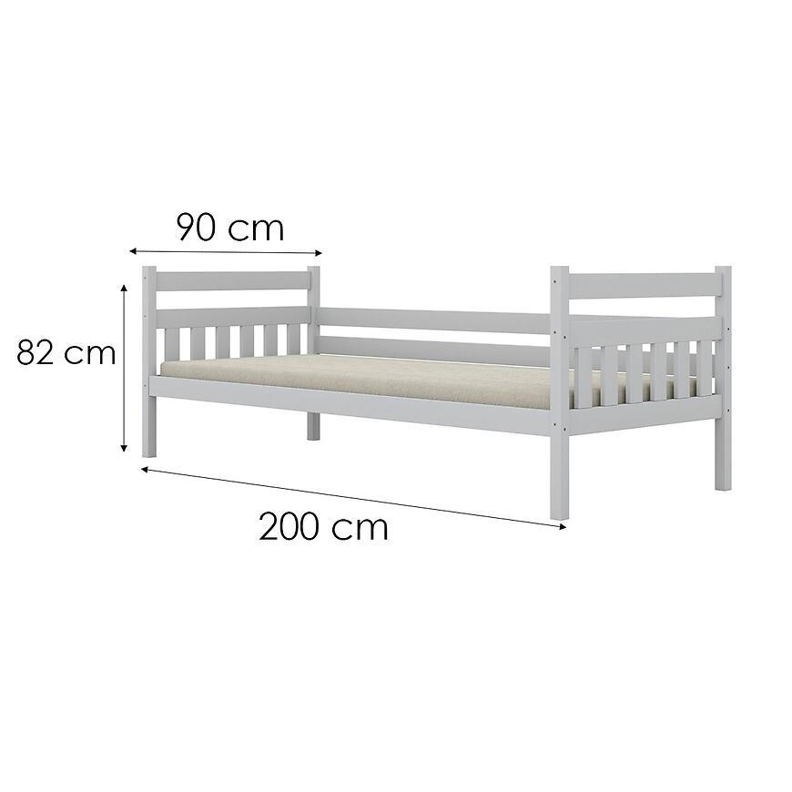 Powierzchnia spania 200x90 cm zapewnia wygodne miejsce do snu dla dziecka, a dołączony stelaż ułatwia szybkie przygotowanie łóżka do użytku. Materac nie jest w komplecie, co pozwala na dobranie odpowiedniego modelu do indywidualnych potrzeb malucha. Wysokość 82 cm i szerokość 200 cm sprawiają, że łóżko jest stabilne, a jednocześnie optymalnie wykorzystuje przestrzeń pokoju.