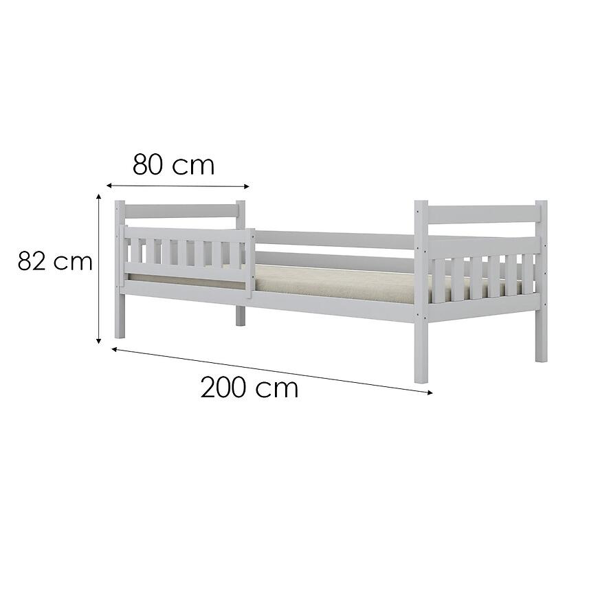 Dwustronna barierka zwiększa bezpieczeństwo podczas snu. Drewniana konstrukcja gwarantuje stabilność i komfort użytkowania. Łóżko wymaga samodzielnego montażu, co ułatwia transport i ustawienie w wybranym miejscu. Brak schowka na pościel podkreśla minimalistyczny charakter mebla.