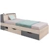 Łóżko Delta dostępne w kolorze dąb/antracyt. W komplecie szuflady na pościel oraz stelaż. Łóżko posiada schowek na pościel, poduszki czy też koce. Dodatkowym atutem jest otwierany zagłówek, w którym można schować mniejsze lub większe rzeczy. Powierzchnia spania wynosi 90x200 cm. Doskonale sprawdzi się w pokoju młodzieżowym. Łóżko do samodzielnego montażu. W skład kolekcji wchodzą komody, regały, biurko, szafka rtv, półki oraz szafy.