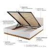 Łóżko w sypialni Dentro to miejsce, gdzie możesz odpocząć i cieszyć się wygodnym snem. Dostępne w dwóch rozmiarach: 160 cm i 180 cm szerokości, jest odpowiednie zarówno dla par, jak i osób lubiących przestrzeń. Funkcjonalna półka w zagłowiu pozwala na wygodne przechowywanie książek, czy też innych drobnych przedmiotów, które chciałbyś mieć pod ręką przed zaśnięciem. Stelaż z gazowymi podnośnikami ułatwia podnoszenie materaca, dzięki czemu dostęp do dużego pojemnika na pościel pod łóżkiem staje się niezwykle prosty. Oświetlenie, które jest elementem łóżka, dodaje przytulności i tworzy miłą atmosferę w sypialni.