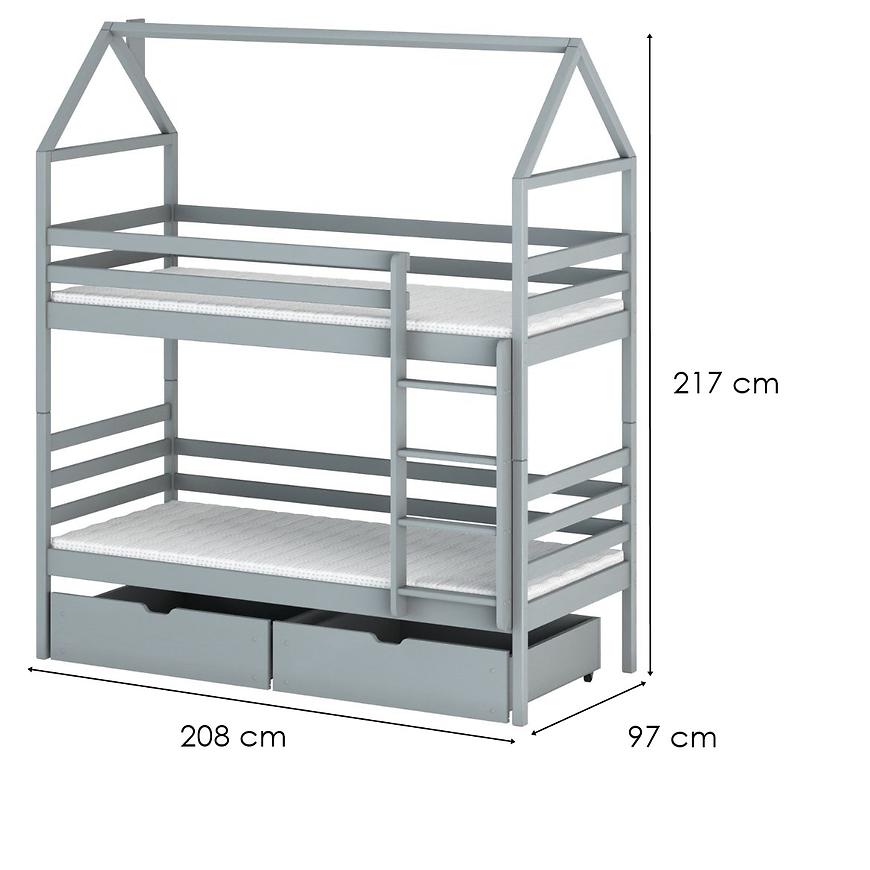 Łóżko Domek Alex 90x200 grey to uroczy i funkcjonalny mebel, który wprowadza wyjątkowy, domowy klimat do każdego pokoju dziecięcego. Wykonane z solidnego drewna, wykończone w eleganckiej kolorystyce, doskonale wpisuje się w nowoczesne trendy wnętrzarskie. Jego nietypowy kształt w formie domku sprawia, że staje się nie tylko miejscem do spania, ale również inspirującą przestrzenią do zabawy, rozwijającą kreatywność dzieci.