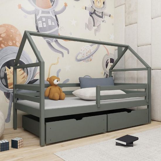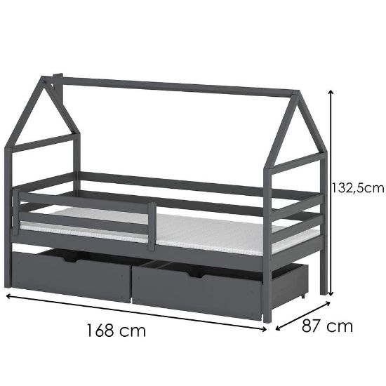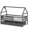 Łóżko Domek Aron 80x160 graphite to uroczy i funkcjonalny mebel, który wprowadza wyjątkowy, domowy klimat do każdego pokoju dziecięcego. Wykonane z solidnego drewna, wykończone w eleganckiej kolorystyce, doskonale wpisuje się w nowoczesne trendy wnętrzarskie. Jego nietypowy kształt w formie domku sprawia, że staje się nie tylko miejscem do spania, ale również inspirującą przestrzenią do zabawy, rozwijającą kreatywność dzieci.