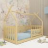 Łóżko Bodzio wykonane jest z solidnego drewna, co zapewnia trwałość i wytrzymałość na wiele lat. Jego minimalistyczna, a jednocześnie wyjątkowa konstrukcja w formie domku sprawia, że jest ono niezwykle estetyczne i stanowi centralny punkt każdej dziecięcej sypialni. Matowe wykończenie nadają meblowi elegancji i uniwersalności, dzięki czemu pasuje do różnych stylów wnętrz – od skandynawskiego po nowoczesny.