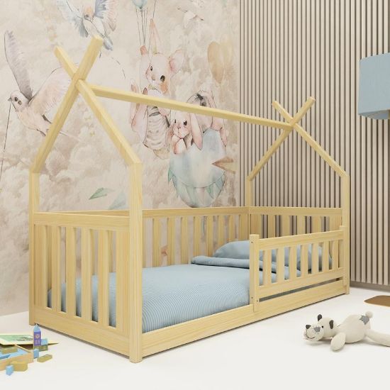 Mimo braku tapicerowania, prostota i naturalność drewnianej konstrukcji tworzy wyjątkowy klimat, który sprzyja wyciszeniu i spokojnemu odpoczynkowi. Łóżko Domek Bodzio nie posiada materaca w zestawie, co pozwala na indywidualny dobór tego elementu zgodnie z potrzebami i preferencjami dziecka, zapewniając mu maksymalny komfort snu.
