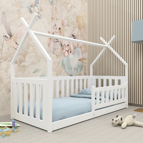 Łóżko Domek Bodzio to wyjątkowy mebel, który łączy w sobie funkcjonalność, estetykę i nutę dziecięcej fantazji. Zainspirowane formą domku, łóżko to nie tylko praktyczne miejsce do spania, ale także przestrzeń, która sprzyja zabawie i rozwija kreatywność najmłodszych. Idealnie sprawdzi się w pokoju dziecięcym, wprowadzając do wnętrza ciepło i przytulność, a zarazem zachęcając dziecko do snu w komfortowym i bezpiecznym otoczeniu.